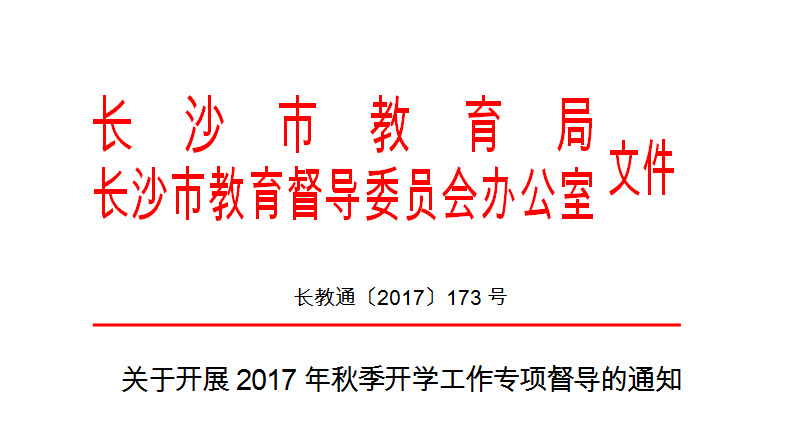 为全面了解新学期开学情况,确保各项工作顺利进行,根据《关于开展2017年秋季开学专项督导检查工作的通知》(湘教