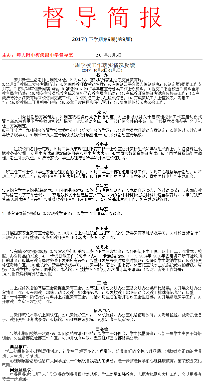 湖南师大附中梅溪湖中学《督 导 简 报》20170209