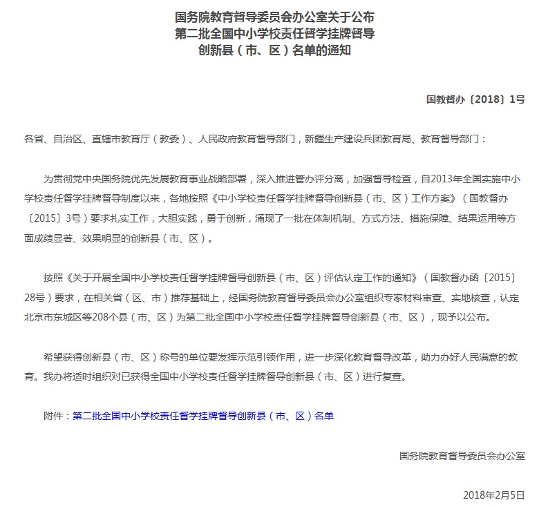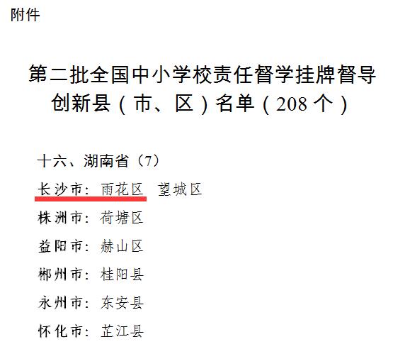 2月6日上午,教育部召开教育新春系列新闻发布会,介绍中小学校责任督学挂牌督导有关工作情况。会上公布了第二批全国中小学校责任督学挂牌督导创新县(市、区)名单,本次评估湖南省仅7个县(市、区)通过,雨花区榜上有名。